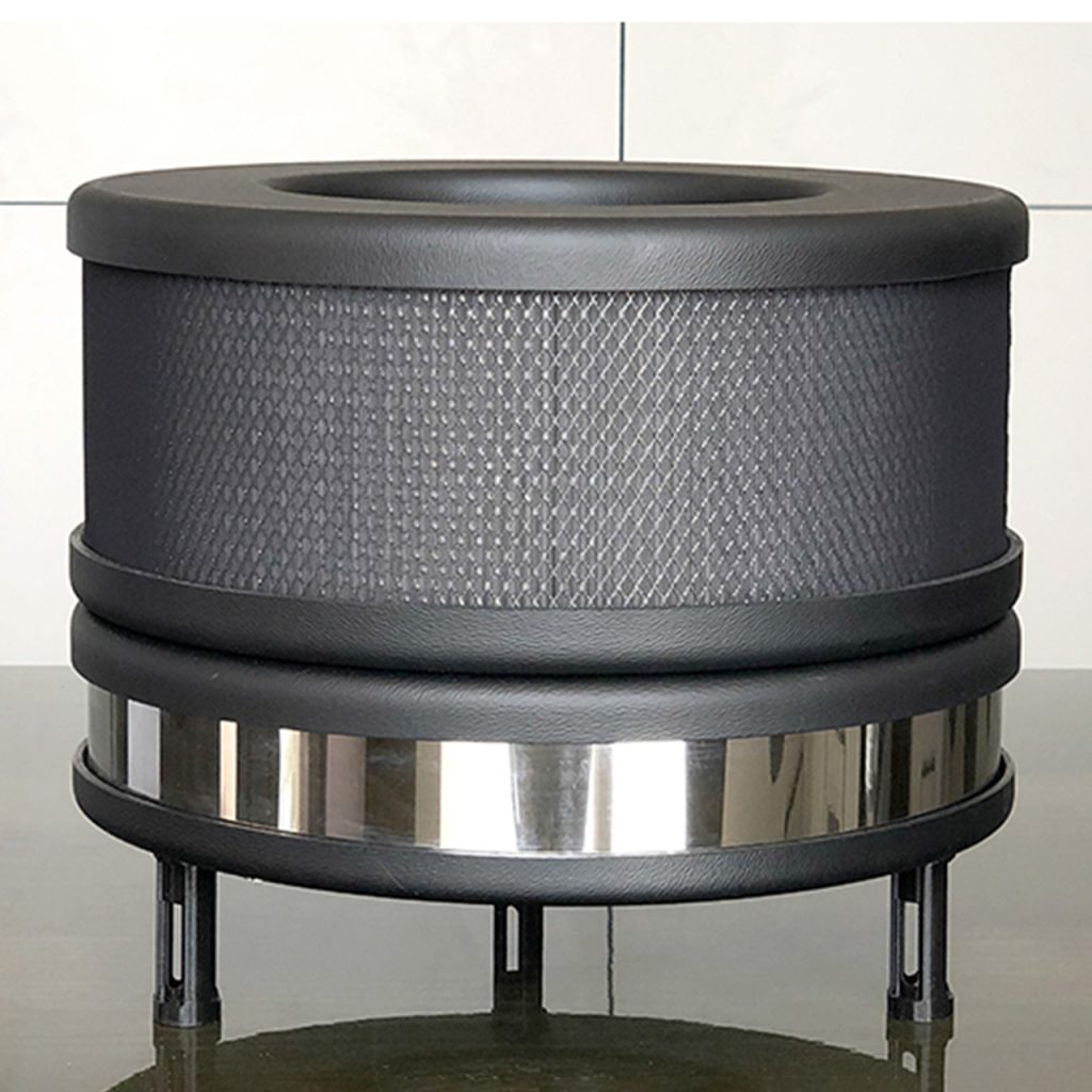 Utilizza solo tecnologi di filtrazione riconosciute: prefiltro di tessuto in microfibra, filtro al carbone attivo impregnato per il trattamento di gas e odori. Filtro HEPA con una superficie di filtrazione pari a 4 mq di materiale filtrante in classe ospedaliera H14.